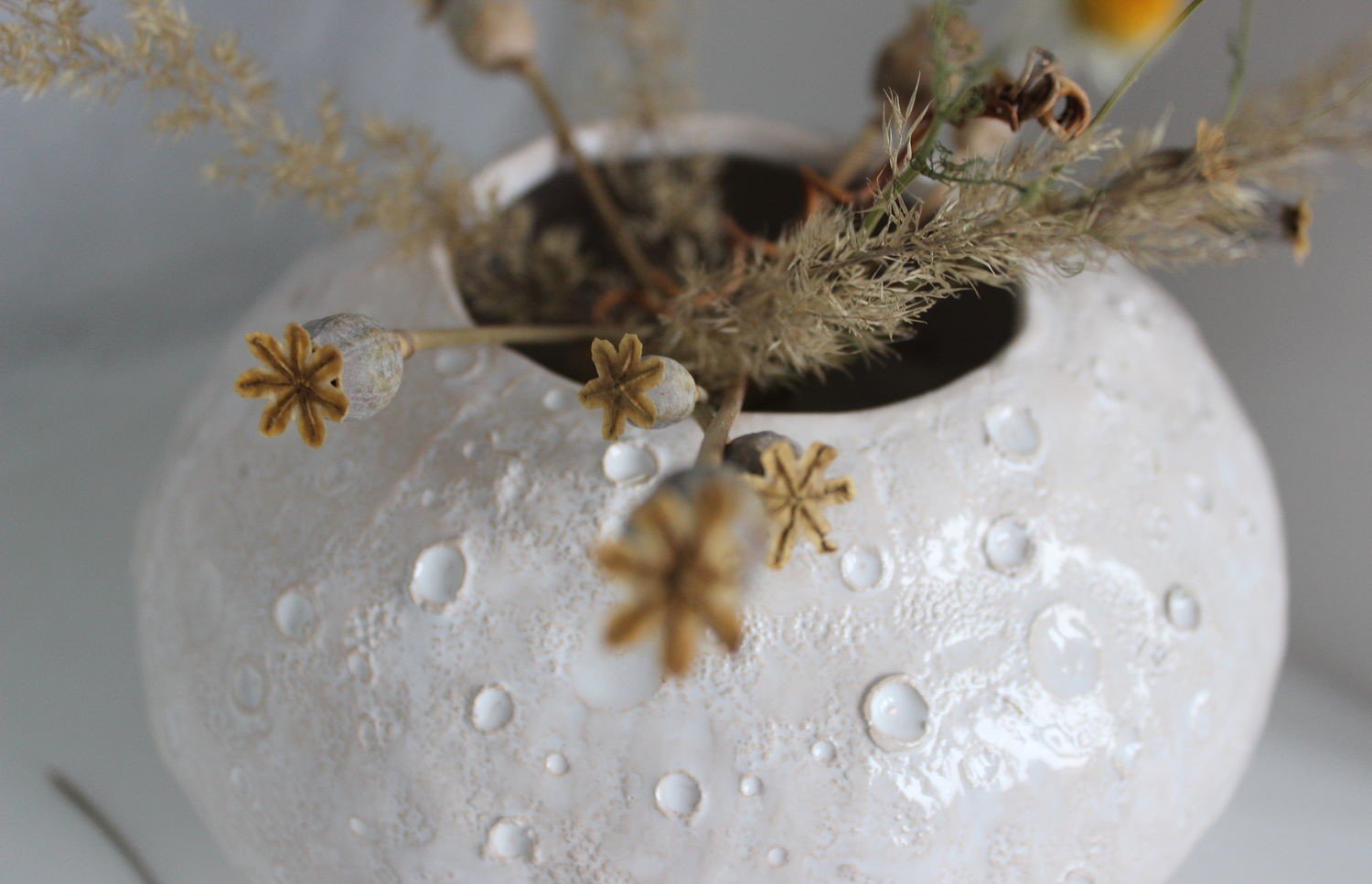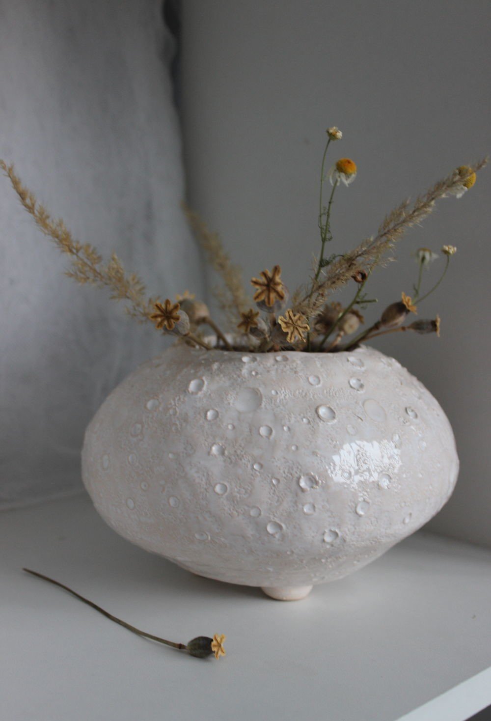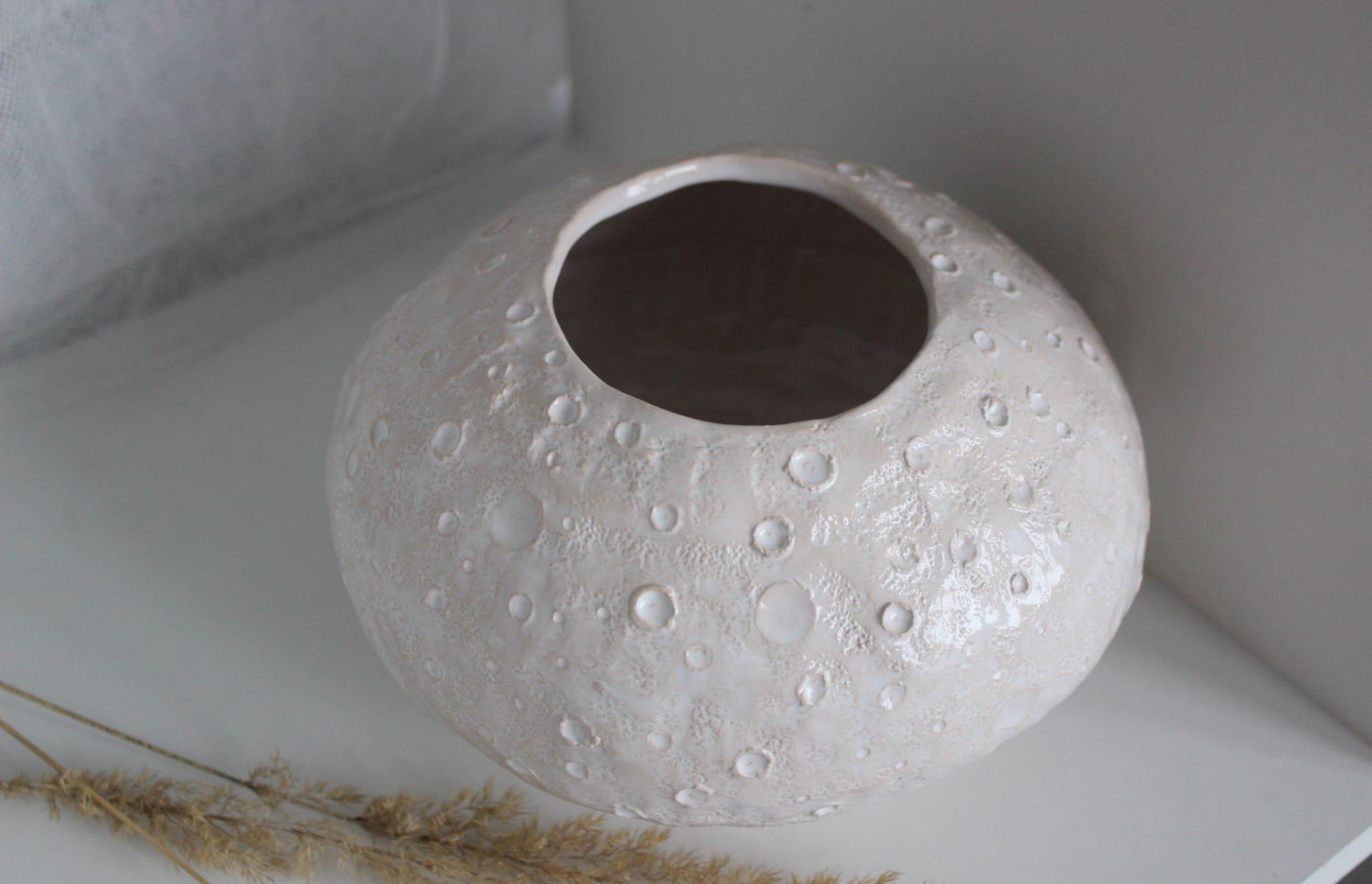 Size: Diameter of the vase 19 cm, height 12 cm, diameter of the neck 9 cm.